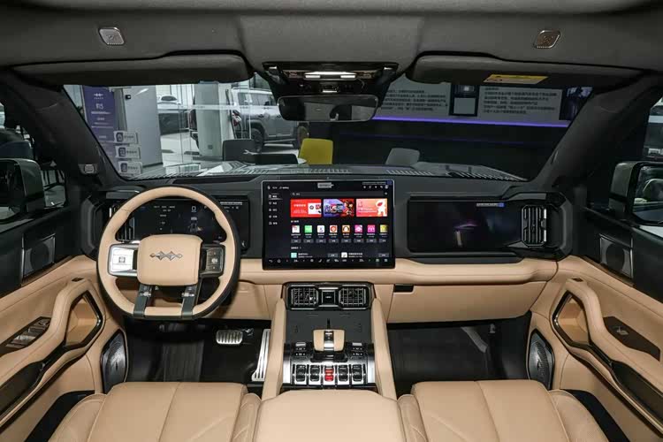而豹8的内饰也是科技感满满,用料也比较扎实,除了大面积皮质材料和双线绗缝工艺,还融入了银色镀铬和木饰纹等元素,在保证美感的同时,还兼顾质感。多功能方向盘有皮质和真皮两种材质,中控岛台安排了双50W手机无线充电面板,后面是未来感十足的电子式挡把,和多媒体控制区域,再往后是双杯架和车载冰箱,冰箱可以放些饮料或食品。高配车型还配备了流媒体内后视镜,自带防眩目功能,可以无视强光照射和车窗阻挡,为用户提供驾驶辅助视野。