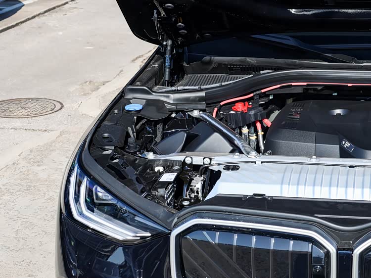 标志性的双肾进气格栅尺寸更为协调,内部采用全新3D立体效果设计,配合带有亮黑色边框的包围,精致感显著提升。智能自适应LED大灯造型更为纤细锐利,内部蓝色点缀凸显了其科技属性。重新设计的前保险杠线条更具张力,两侧的立体进气口设计进一步强化了车辆的运动姿态与稳定感。