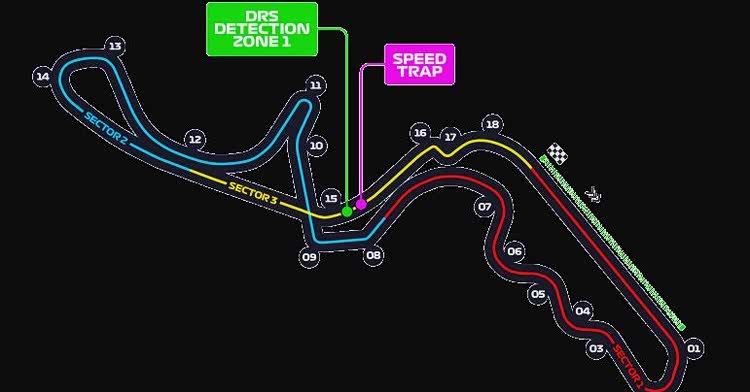 “T1-T3螺线型收缩弯道”为上赛道具有特色的弯道组合,半径93.9米骤降至31.8米,车手需要在2秒内完成200km/h到80km/h的减速,同时还要应对上坡到下坡的重心转移,对走线精度要求达到“毫米级”;“T14 发卡弯”号称心脏骤停点,需要车手在129米内将车速从340km/h瞬间降至60km/h左右,制动距离误差超过5米就可能冲进缓冲区,是超车与失误高发区;“T7-T8 高速弯”是考验赛车空气动力学与底盘调校的关键区域;“T11-T13 螺线型展宽弯道”与“T1-T3螺线型收缩弯道”形成对比,弯道半径逐渐变宽,为车手逐渐加速出弯,进入主直道做好准备。