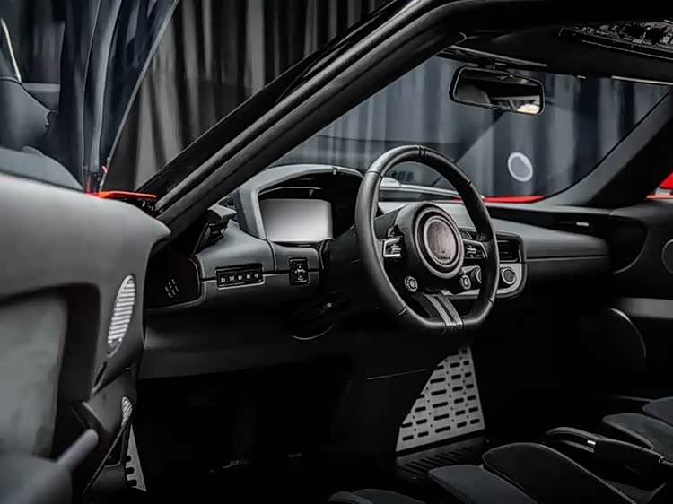新车定位双座硬顶电动跑车,车身尺寸4106/1830/1170mm,轴距2503mm,采用管阵式车架,整备质量1365kg,极致轻量化设计。外观配圆形尾灯与大尺寸扩散器,内饰极简无中控大屏,保留实体按键,专注驾驶乐趣。
