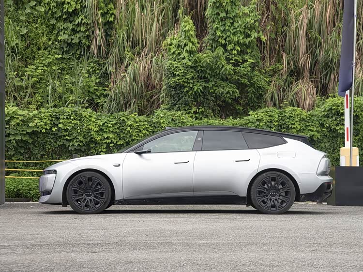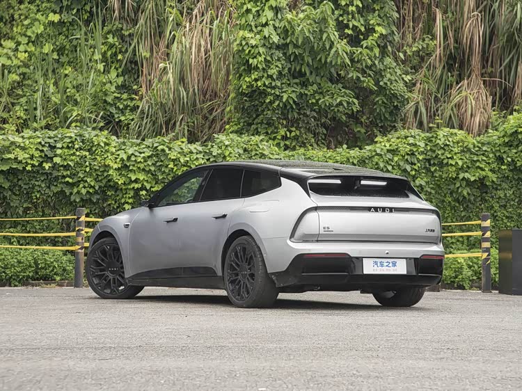 再来看车身侧面部分,奥迪E5 Sportback采用了经典的旅行车的车身结构,搭配4881mm的车身长度以及低趴的车身姿态,使其呈现出轿跑式的运动气场。流畅的线条从车头延伸至车尾,勾勒出极具动感的轮廓,让人不禁联想到奥迪经典车型初代TT的鲜明线条与RS6的雕塑感车身比例。车门采用的是无边框的设计元素,隐藏式门把手的造型能够保障侧面的曲线美。前轮胎规格尺寸为245/45 R19,后轮胎规格尺寸为275/40 R19,大尺寸厚壁的轮胎进一步增强了车辆的运动感。车顶能够看到激光雷达,为车辆的高速及城市NOA功能提供了硬件支持。