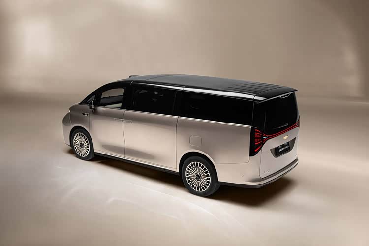 新车定位中大型MPV,共推出3款车型。外观方面,前脸配备星河长虹贯穿灯和专属24K曜金天马车标,顶部配备激光雷达,极具辨识度。车身侧面,平直修长,配备大尺寸电动踏板。尺寸方面,长宽高分别为5360/1998/1920(1940)毫米,轴距为3200毫米。