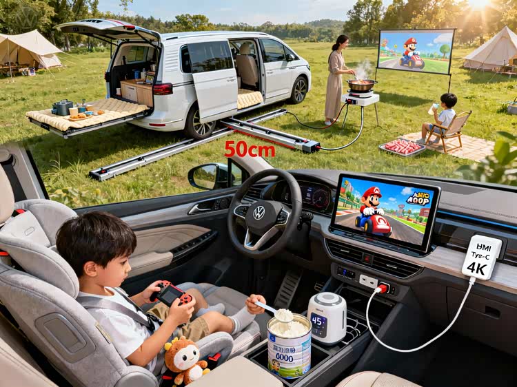 客观说,T7确实重新定义了亲子出行的标准——它不再是“能装娃的车”,而是“懂娃的车”。但要成为新中产标配,还得等量产版优化第三排空间,把价格打下来。毕竟我们这些上有老下有小的中年人,要的是实用,不是情怀。【车型图:大众T7露营场景侧视图,车身线条流畅,后备箱打开】
