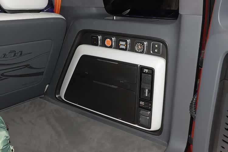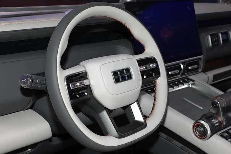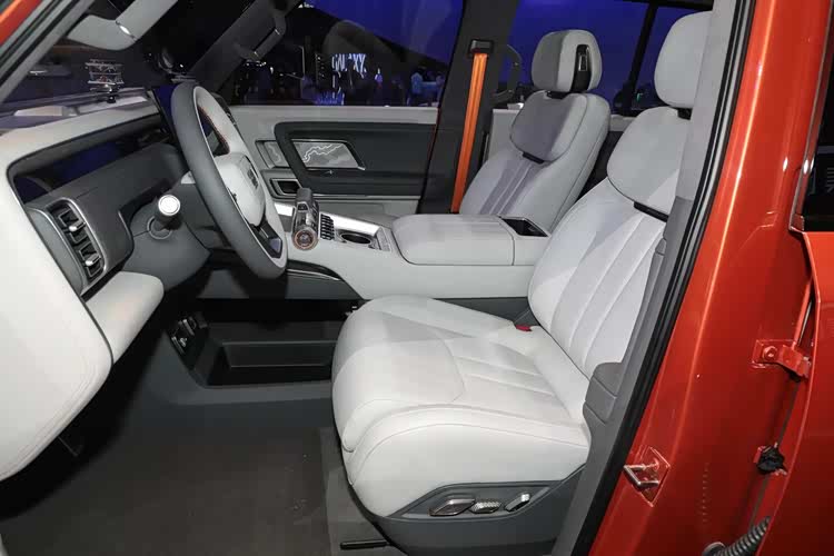 其实看到驾驶舱,大家伙应该就知道为什么我说银河战舰是可以直接量产的。看上去,它的飞机操纵杆式的换挡机构、副驾与后备厢位置的多越野仪表组件,还有风挡下的支架结构,看上去是有点儿“概念化”,不过,真要是量产其实没什么难度。而且除了这几处设计,银河战舰的三辐式方向盘、贴合布局的大尺寸中控屏,还有多区域布局的物理按键等等,都会给人一种“已经准备好了”的感觉。