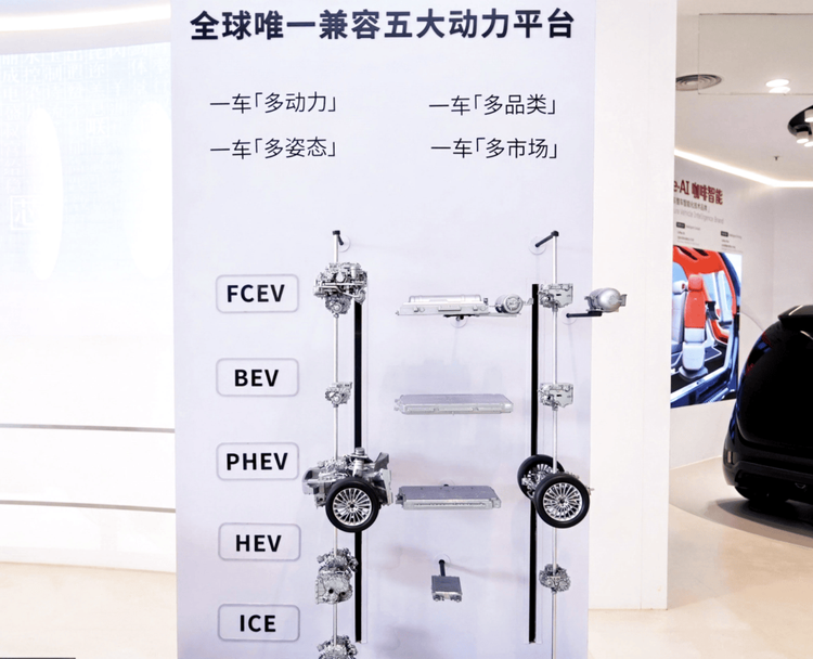 那么归元平台具体有哪些特点呢,等我一一道来。 现在造车跟以前不同,不只是只有燃油车,归元平台将实现一个平台之下生产多种车型的能力。提供“一车多动力”路径,不同动力形式模块化组合,按需定制,兼容PHEV(插电式混合动力汽车)、HEV(混合动力汽车)、BEV(纯电动汽车)、FCEV(氢能燃料电池汽车)、ICE(高效内燃机汽车)五大动力形式,覆盖轿车、城市SUV、泛越野SUV、强越野SUV、皮卡、MPV、跑车七大品类,计划推出涵盖五大动力形式的50余款车型。实现“一套架构、全域兼容”。