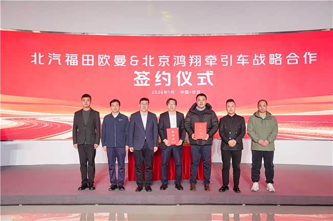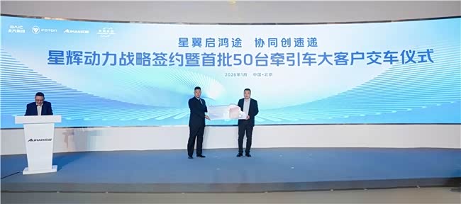 2026年1月20日,以“星翼启鸿途、协同创速递”为主题的星辉动力战略签约暨首批 50台牵引车大客户交车仪式在北京超级卡车体验中心隆重举行。活动现场,北汽福田欧曼与北京鸿翔物流进行战略合作签约,并正式交付首批50台欧曼星翼牵引车。这既是欧曼重卡以场景定制方案助推快运物流行业转型升级的高效实践,也为现代流通体系高质量发展注入了强劲动力。来自北汽集团、北汽福田、欧曼事业部等相关领导,以及北京鸿翔相关负责人、核心经销商、合作伙伴、媒体代表等共同见证这一标志性时刻。