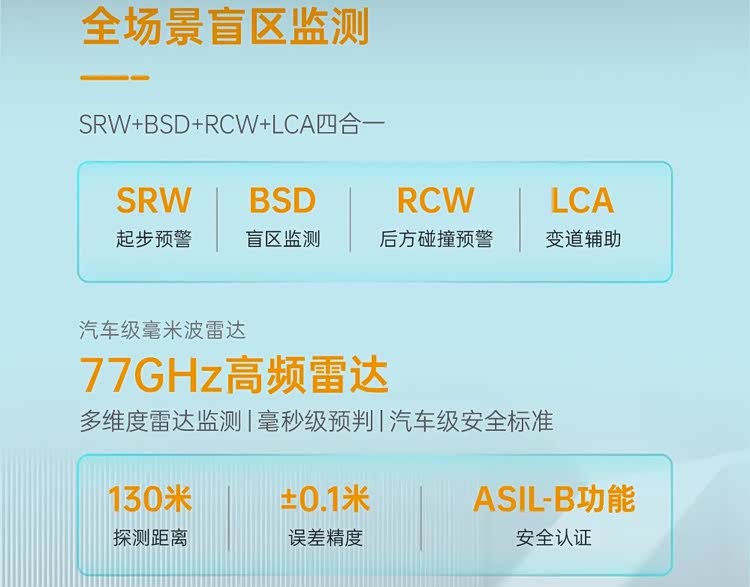 赛科龙RT250E在配置上实现了智能化,例如它的全场景监测,能够融合起步预警、盲区监测、变道辅助、后方碰撞预警四大功能,其探测距离可以达130m,拥有ASIL-BE安全认证。