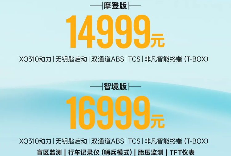 与此同时,它还会有集多种功能为一体的T-BOX,能够实时掌握车辆状态。另外该车也标配有无钥匙启动、双通道ABS、TCS等基础项目,以及更多的原装改装套件,其中包括尾箱、挡风玻璃、前后物架、前后挂包、护杠等。