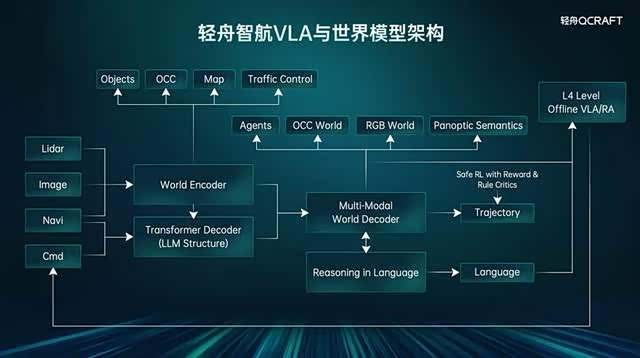 本次发布会上,轻舟正式亮相“VLA+世界模型”统一架构。该架构不仅能复用经过百万量产验证的端到端能力,还能通过语言能力精准理解环境文本、复杂场景与语音指令,实现模型决策、远程接管与人机交互的三重对齐;再借助世界预测模型,精准推演交通参与者行为、道路结构变化与动态场景演进,从而规划出最优行驶轨迹。这一技术将赋予辅助驾驶系统应对现实复杂性的能力,逐步实现行为逻辑泛化推理、物理规律理解、社会常识理解等关键突破,为最终实现L4级自动驾驶奠定基础。