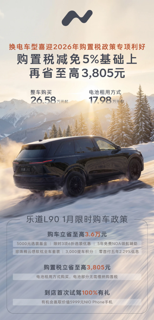 以乐道L90为例,其电池可租可购,若选择租用电池方案,用户在2026年后购车将仅按车身价值计税,相比同级一体式电池车型的售价,购置税可大大节省。这一政策不仅体现了国家对换电技术路线的战略支持,更让乐道L90成为消费者与政策双向利好的典范。在行业普遍面临成本压力的当下,乐道凭借先发的换电布局,提前锁定了未来数年的竞争优势。