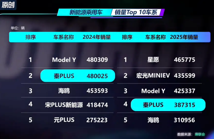 数据看上去很有说服力:比亚迪在前十榜单中的席位从2024年的8个降到5个, 秦PLUS(参数|询价)、海鸥、宋PLUS销量集体回落,再叠加裁撤部门、精简机构的消息,一个熟悉的判断迅速成型——比亚迪是不是已经开始走下坡路了。