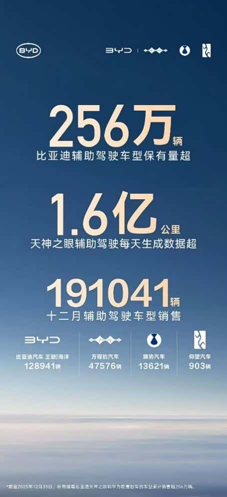 在汽车产业向智能化全面转型的今天,辅助驾驶已不再是高端车型的专属配置,而是成为越来越多消费者购车时的核心考量。在这场激烈的市场竞争中,比亚迪天神之眼辅助驾驶系统凭借硬核实力脱颖而出,天神之眼车型持续热销,截至2025年12月,其辅助驾驶车型累计保有量已突破256万辆,稳稳占据中国车企第一的宝座,天神之眼辅助驾驶也成为中国市场装车量最大的辅助驾驶系统,比亚迪全民智驾战略取得显著成效,让全民智驾的美好愿景照进了现实。