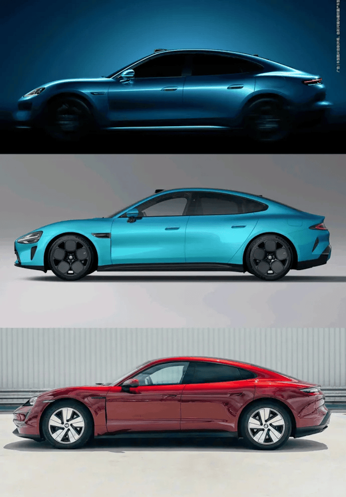 ▲图上为尚界Z7、图中为小米 SU7、图下为保时捷Taycan(图片来源网络)