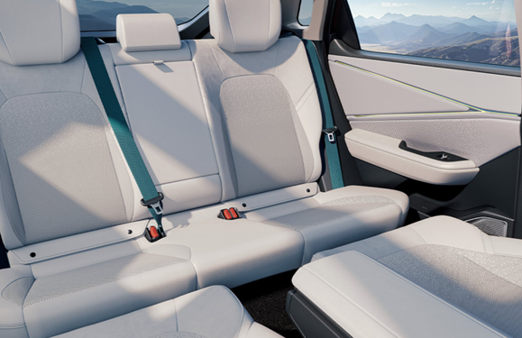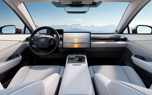 把目光转移到车内,大家会发现丰田BZ5的座舱空间也很大,并且这个大不只是体现在尺寸上面。作为一款标标准准的中型SUV,丰田BZ5的轴距达到同级领先的2.88米,搭配纯电平台赋予的更高得房率,以及配备的支持加热功能的电动座椅、支持分区控制的热泵空调等多项配置,坐着可谓是宽敞又舒适。