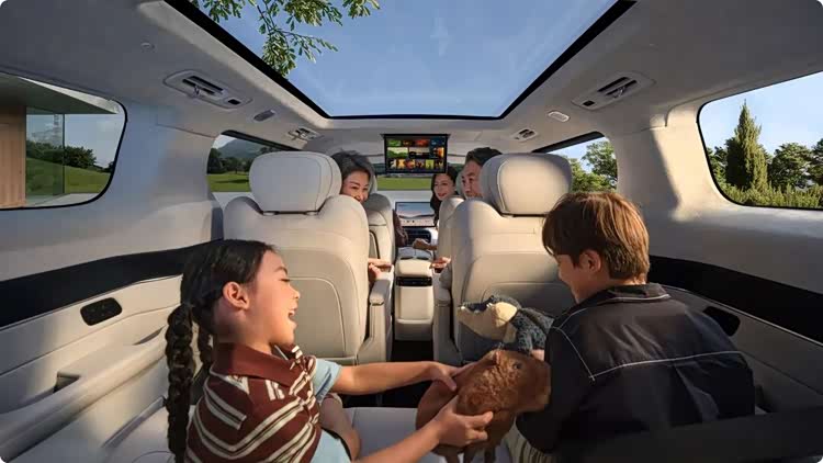 不止于宽敞,银河V900更将舒享做到了极致。11层云感SPA座椅搭配Nappa真皮,一二排通风、加热、按摩一应俱全,三排也配备通风、加热与电动调节靠背,让老人孩子久坐也不累;27扬声器Flyme Sound无界之声系统配合后排娱乐巨幕,把移动影音厅搬进车内,远途出行再无沉闷;-6℃~50℃超宽温域冷暖箱,一路呵护冰镇饮品与温热汤食,留住家的味道;双层夹胶静音玻璃、主动降噪与静音轮胎打造的图书馆级静谧空间,搭配全环保材料座舱、智能新风系统与负氧离子发生器,让每一次呼吸都安心,让老人孩子能在车内尽情休息。从细节到全局,银河V900让全家人的出行,无论长短途,无论动与静,舒享都拉满。