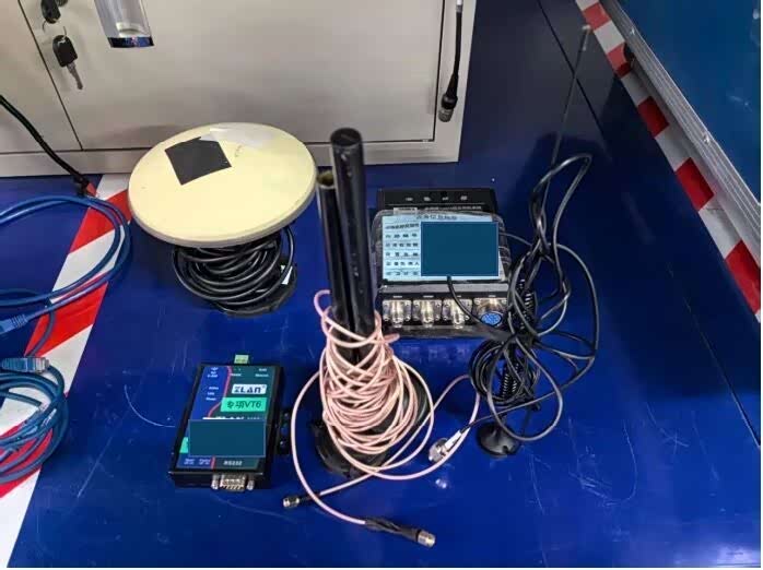 ▲组合导航系统(惯导+GPS融合)、数据传输模块、底盘车通信模块