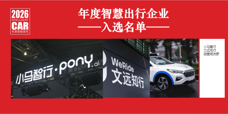 2026年度智慧出行企业入选名单:小马智行、文远知行、百度阿波罗。三家专注L4的科技初创公司和团队,两家(小马智行和文远知行)实现了在港股上市,三家同时开始开拓海外市场,相比而言,百度阿波罗在国内和国际市场规模更大,并已超越Waymo,在2026年已有更多的车企和科技公司深度布局Robotaxi,这三家公司依然是后起之秀需要追赶的先行者。