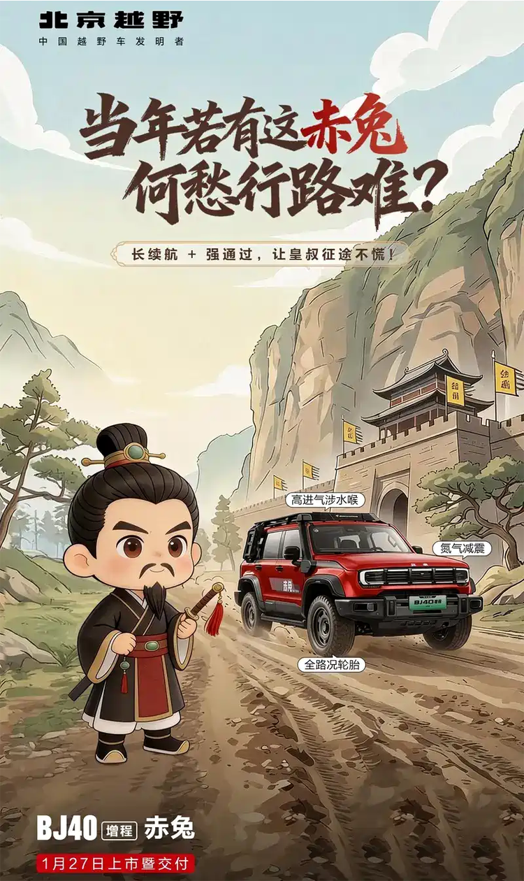 1月27日, 北京越野BJ40增程(参数|询价)赤兔版将要上市。