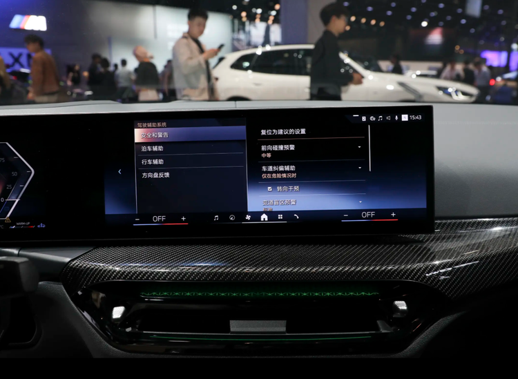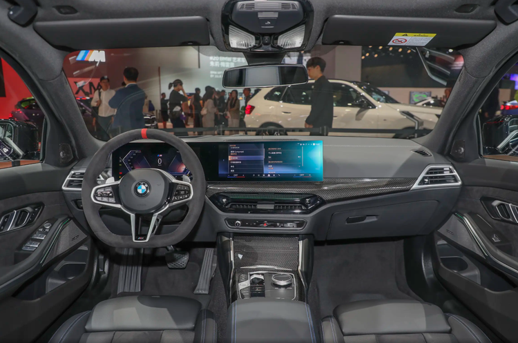 内饰部分,330Li高配车型给了碳纤维饰条和水晶组件。好看吗?好看。