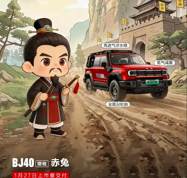 车家号·0浏览·2026-01-24 15:09 · 广东日前,我们从北京越野官方获悉, 北京越野BJ40增程(参数|询价)赤兔版将于1月27日上市并交付。作为新增版本车型,北京越野BJ40增程赤兔版在越野性能层面进一步提升,搭载由1.5T发动机组成的增程动力系统。现阶段,在售2025款北京越野BJ40增程的官方指导价为17.98万元起。