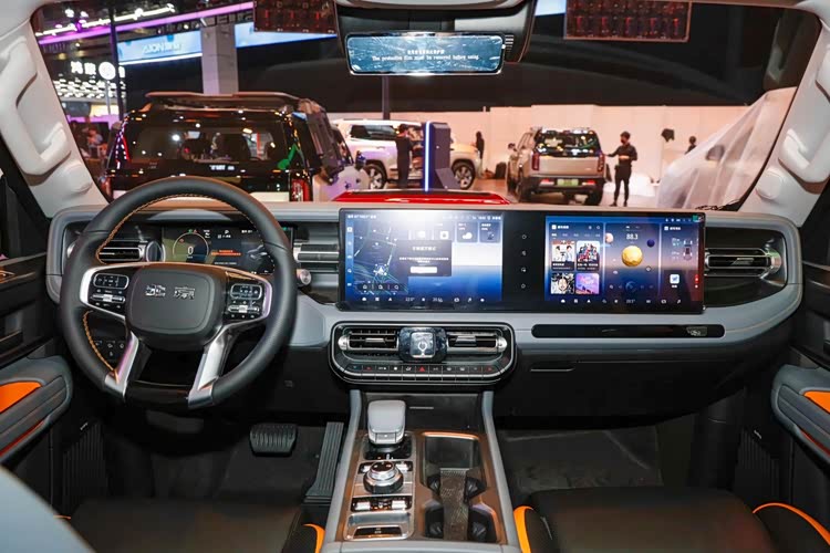 内饰方面,北京越野BJ40增程赤兔版保留了部分按键,大尺寸中控屏与副驾驶娱乐屏采用双联屏形式,内置系统预计由高通骁龙8155芯片提供支持。另外,北京越野BJ40增程赤兔版采用五座布局,并且提供前排座椅通风/加热/按摩等功能。