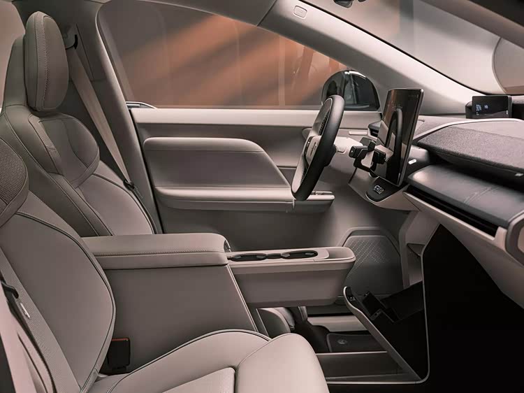 内饰设计简约立体,中控台整体造型很有层次感,液晶仪表盘使用了远端屏式布局,中间是悬浮式的中控屏,中控面板错落有致。前排中央扶手箱前部使用了悬浮式的杯架,下部带有很大的储物空间,前部还使用了带盖板的储物格,有着不错的设计感。