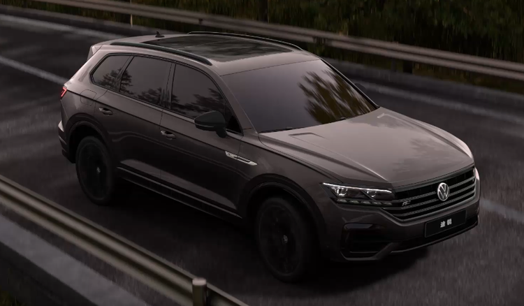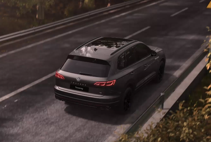 从侧面来看,整个侧面包括反光镜、轮毂以及车顶行李架,都是熏黑样式的造型设计。尾部采用了贯穿样式的尾灯设计,匹配了双边共双出的镀铬排气管。车身尺寸进行了一定程度的增长,长宽高分别为4913/1984/1697mm,轴距是2899mm,而25款大众途锐的车身长度为4878mm。