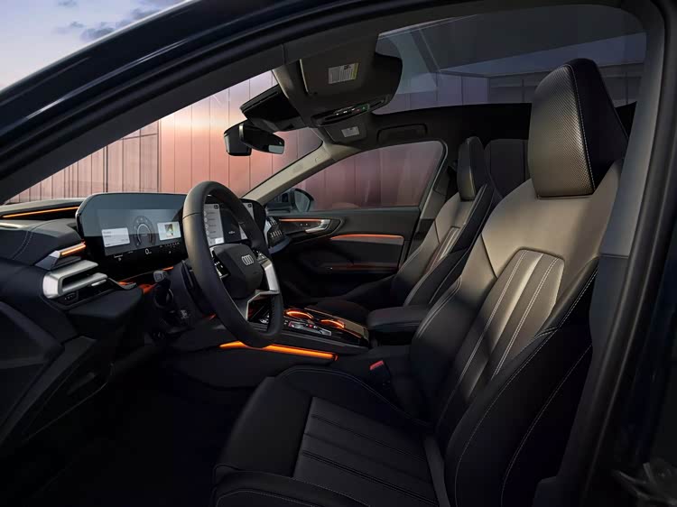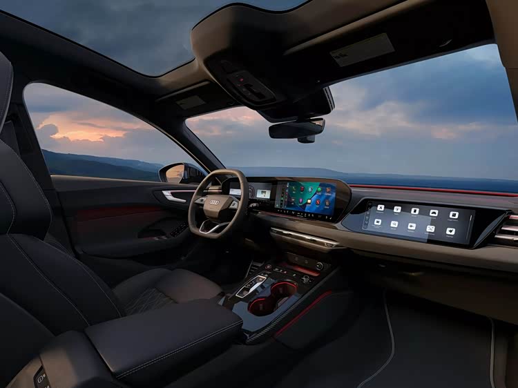 内饰方面,整体布局没有变动,提供有曲面双联屏、三幅式多功能方向盘、副驾驶娱乐屏以及拨杆式电子档把,S5家族加入了碳纤维饰板进行装饰,而且配备有一体式运动座椅。而且换装了带实体滚轮的方向盘,提高了使用体验,车机系统也有升级,界面风格更显简洁,而且APP也变成了彩色图标。副驾屏可以支持独立的蓝牙耳机,和中控屏互不干扰。全景影像、方向盘加热、行车记录仪、头枕音响等也下放到了更多配置当中。