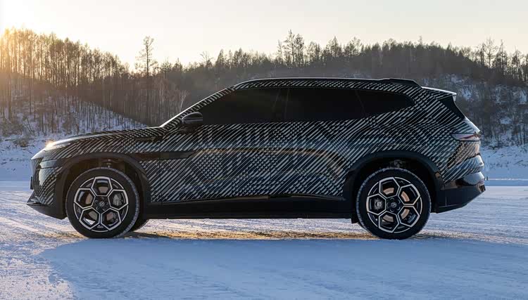 车身侧面,与众08自前大灯延伸至前车门的黑色饰条具有一定辨识度,配备无框车门、隐藏式门把手、车顶行李架、21英寸足球风格金色轮辋+金色卡钳等。据悉,该车共有三种铝合金轮辋选择。车身尺寸方面,与众08长宽高分别为5000/1954/1688毫米,轴距3030毫米。
