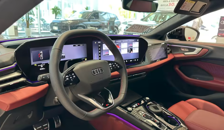 车身侧面轴距较标准版 A7L 加长 80-100mm,预计突破 3 米大关,大幅提升了后排乘坐空间。C 柱后的溜背线条自然过渡至垂直尾门,兼顾了轿跑的动感与行李厢的实用性。车尾部分,搭载了由 364 个发光单元构成的第二代数字 OLED 尾灯系统,支持灯光交互功能,紧急情况下可显示警示符号。