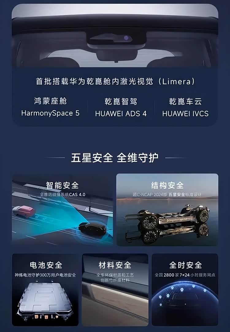 华境S标配鸿蒙座舱HarmonySpace 5系统和乾崑车云HUAWEI IVCS,人机交互和功能拓展性方面将达到了较高的水平,而且华境S是首批搭载乾崑舱内激光视觉方案的车型,将大幅提升夜间识别低矮障碍物等复杂场景的行车安全,标配华为乾崑驾ADS 4驾驶辅助系统。