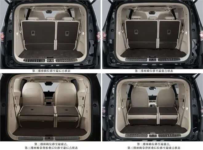 至于内饰,官方并没有公布任何信息,但是从申报图也能看出多种信息。第一是智界V9的第三排座椅支持前后移动,可以平衡乘坐空间和装载空间的需求,同时第三排座椅也支持抢先翻折来扩展后备箱空间。
