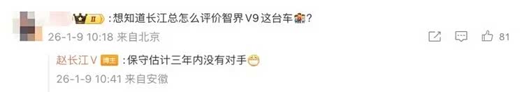 前面这句话来自赵长江回复网友的原话,赵长江如今的身份是智界汽车执行董事及执行副总裁,所说的车型就是智界V9。