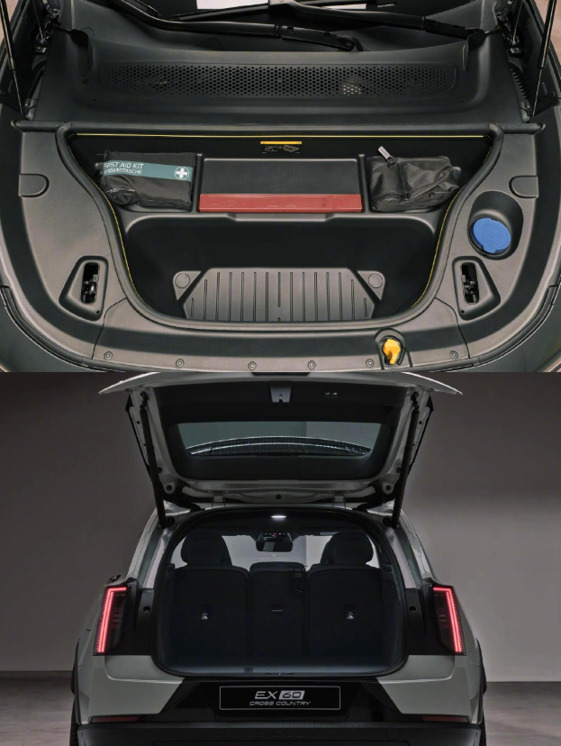 车型尾部采用了层次鲜明的尾灯设计,并且是搭载运动尾翼的。不知道大家有没有发现,不管是侧面、车头还是尾部,都有着大量的车载摄像头,这其实足以说明新车是带有540度全景影像系统的,而且预计也会有纯视觉驾驶模式,毕竟沃尔沃的优势就在于安全系数非常高。这种前瞻性的安全肯定是不会放过的。此外,不管是车头的前备箱,还是尾部的后备箱,空间感都很出色。前备箱呈现出上下分层的设计,更加有利于提升空间的利用率。