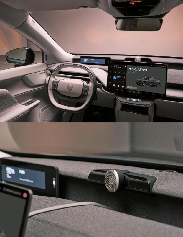 内饰设计同样主流,除了拥有全景大天幕以外,中控台呈现出从前往后的层次设计,极具渐进样式的造型。此外,还匹配了小巧的数码行车电脑,也拥有悬浮式的中控大屏。更关键的是,整车的空间感打造得较为理想,甚至中央扶手都形成了悬浮式的设计。此外,我们还发现是带有宝华韦健音响的,也拥有隐藏样式的空调出风口,甚至连方向盘都采用了极其简约的双辐式造型。总体而言,这款沃尔沃EX60的内部看上去空间大,智能化程度足,豪华感比较突出。