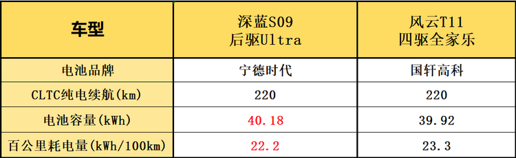 整体来看,风云T11的续航表现已经能够满足基本需求,而深蓝S09则是在同级参数相近的情况下,通过更成熟的电池体系和更优的能耗表现,让长途出行多了一份确定性。就电池品牌供应商和电池度数来说,深蓝S09会存在一定优势。