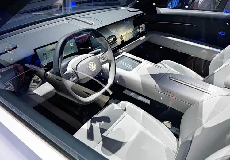 由于新车的内饰暂时还没有曝光,我们先来看一看大众ID.EVO概念车的内饰,新车预计将会与该概念车的内饰相似。核心交互区域由独立液晶仪表、15.6英寸OLED中控屏与副驾屏幕组成双连屏系统,支持分屏显示与3D车模交互。双辐平底方向盘搭配怀挡式电子换挡,取消90%物理按键,门板处保留金色车窗控制实体键,兼顾简约与实用。车内采用大五座布局,座椅配备18个气动按摩模块,后排靠背角度可调且配备娱乐屏,环保亲肤材质覆盖多处接触面,配合环绕式氛围灯与主动降噪技术,提升驾乘体验。