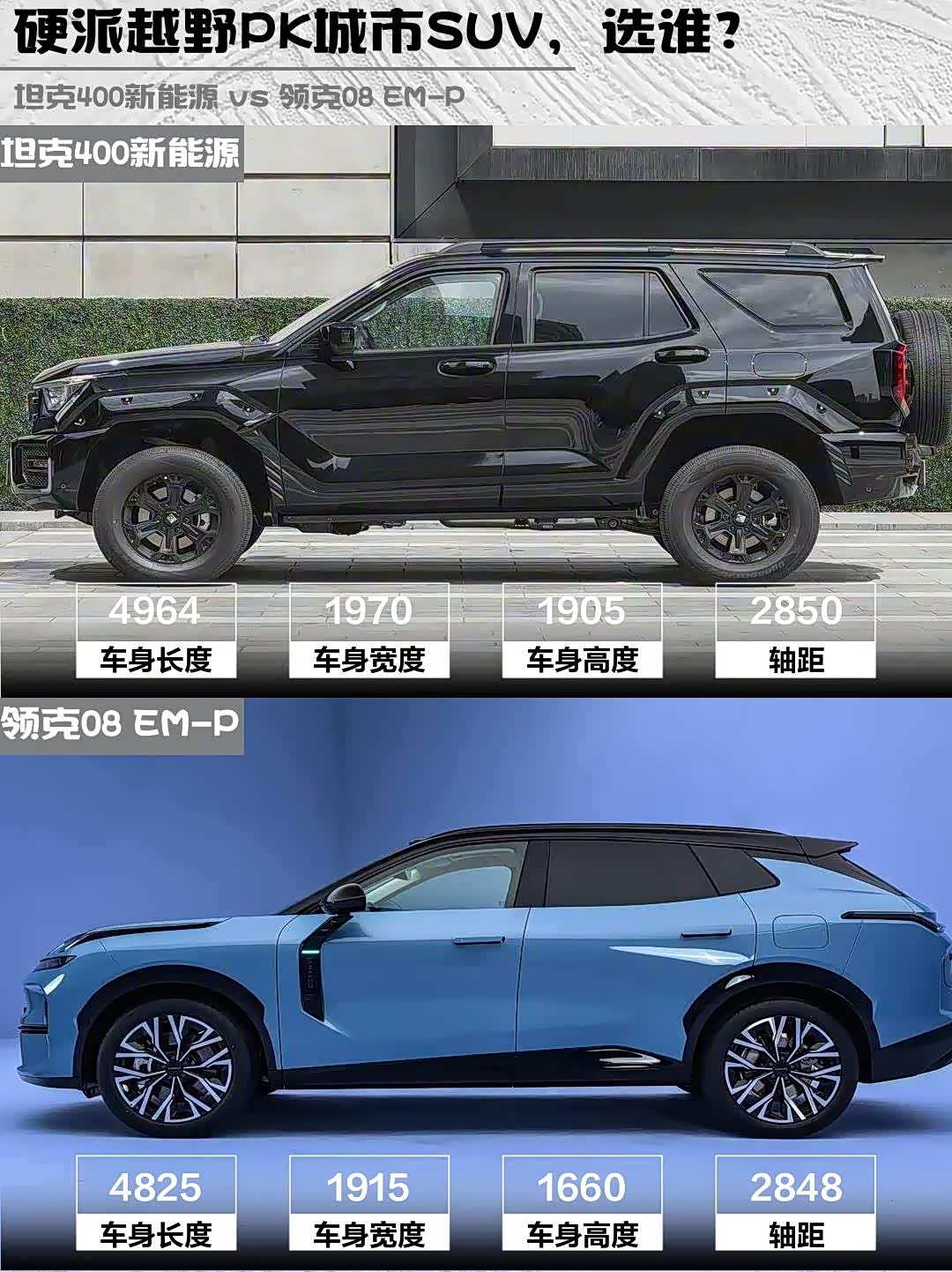 • 经常玩越野/长途穿越:闭眼选坦克400新能源,三把锁+坦克掉头是硬通货
