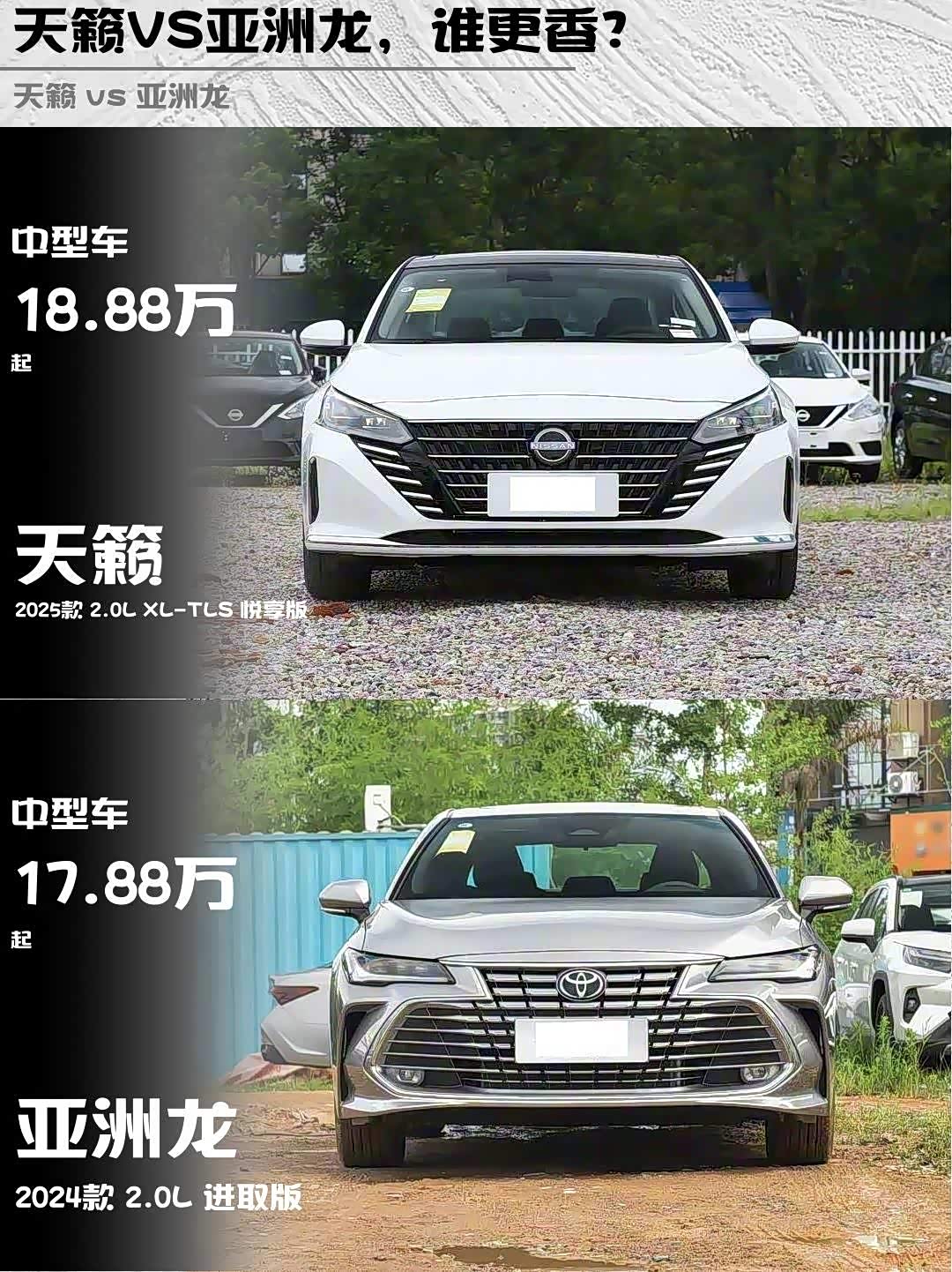 车家号·0浏览·2026-01-26 08:22 · 重庆最近帮朋友选车,在2025款天籁2.0L XL-TLS悦享版和2024款 亚洲龙(参数|询价)2.0L进取版之间纠结了好久,深度试驾后分享点真实感受🔥
