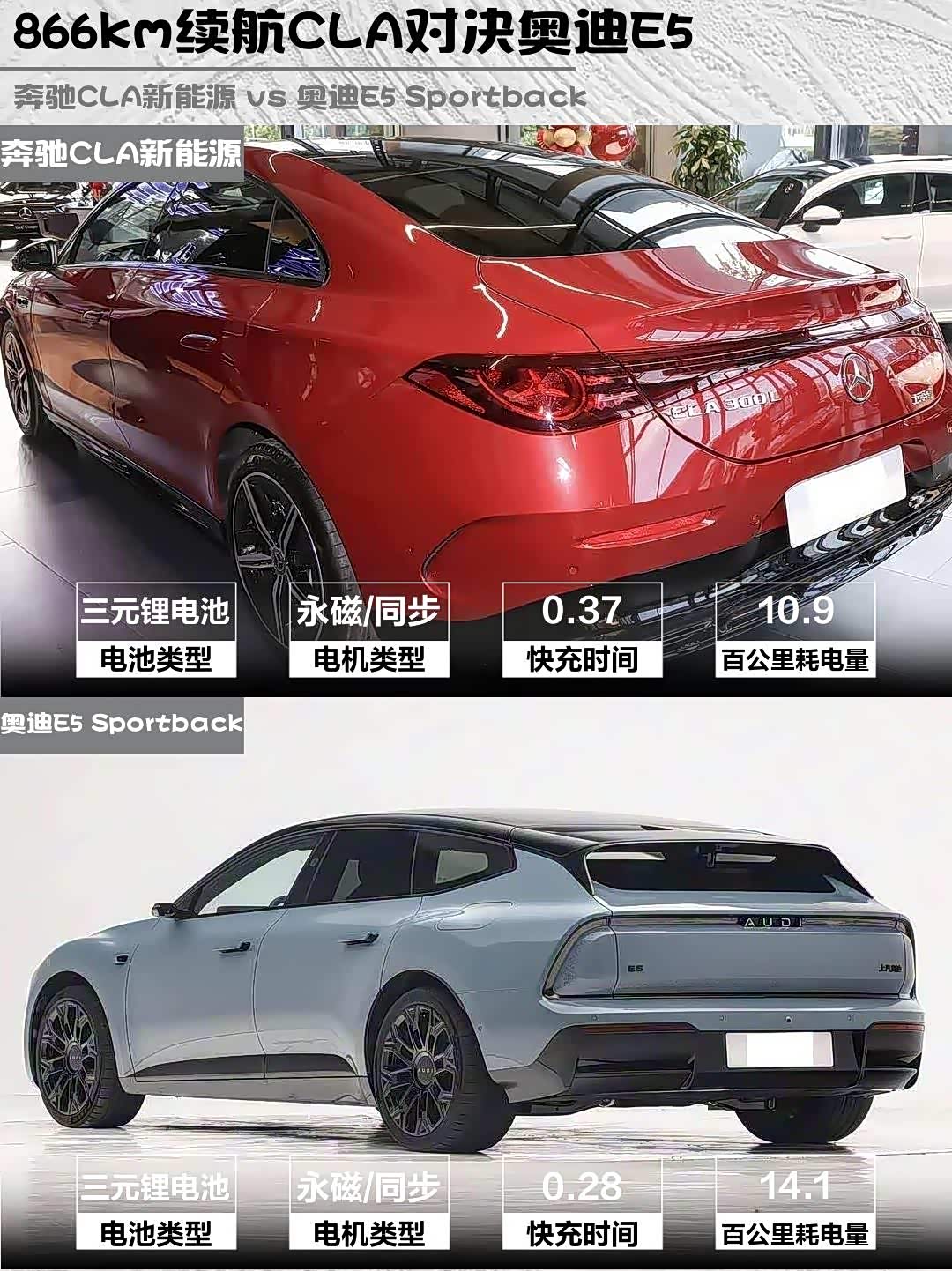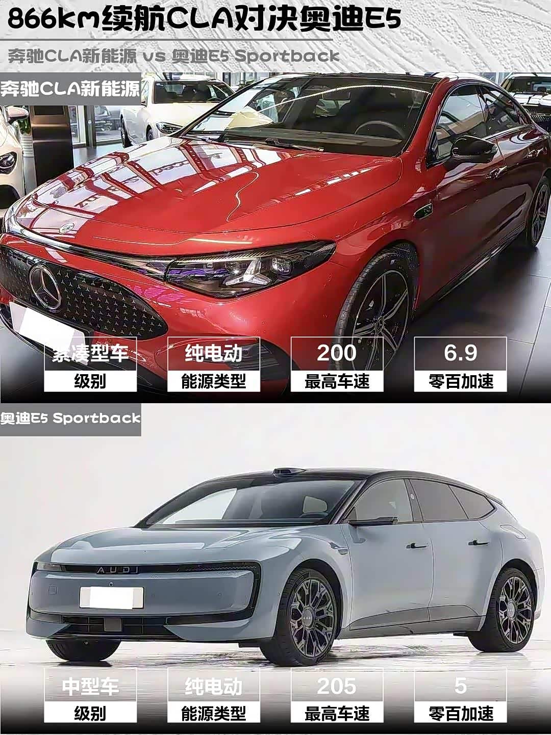 奔驰CLA新能源 vs 奥迪E5 Sportback(参数|询价),30万级纯电轿跑终极Battle!🔥