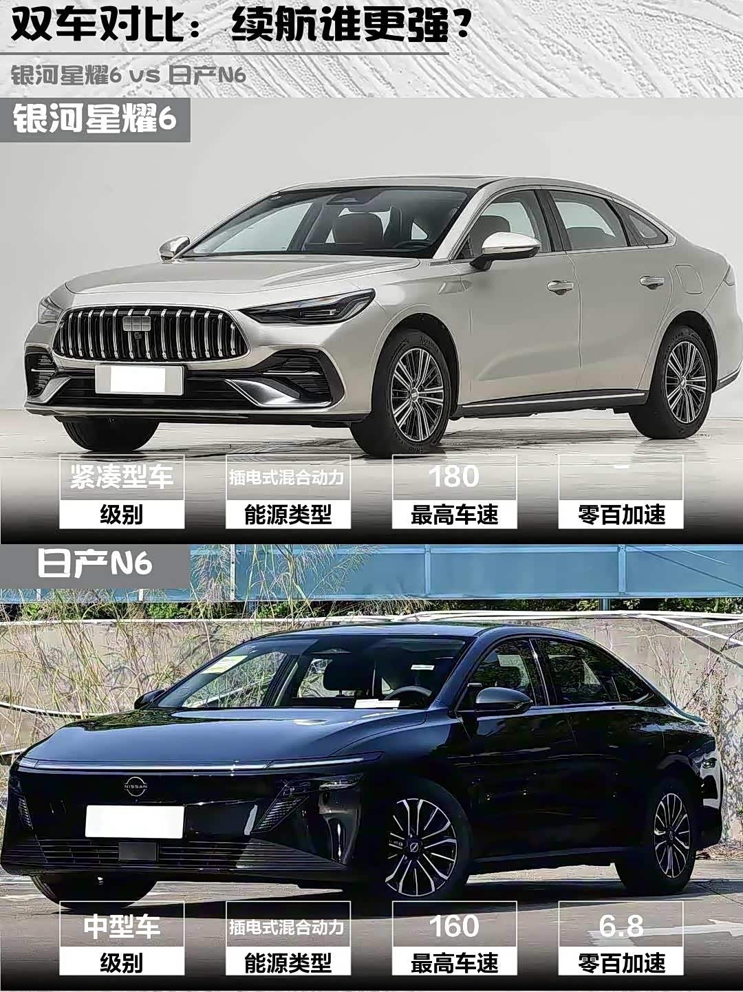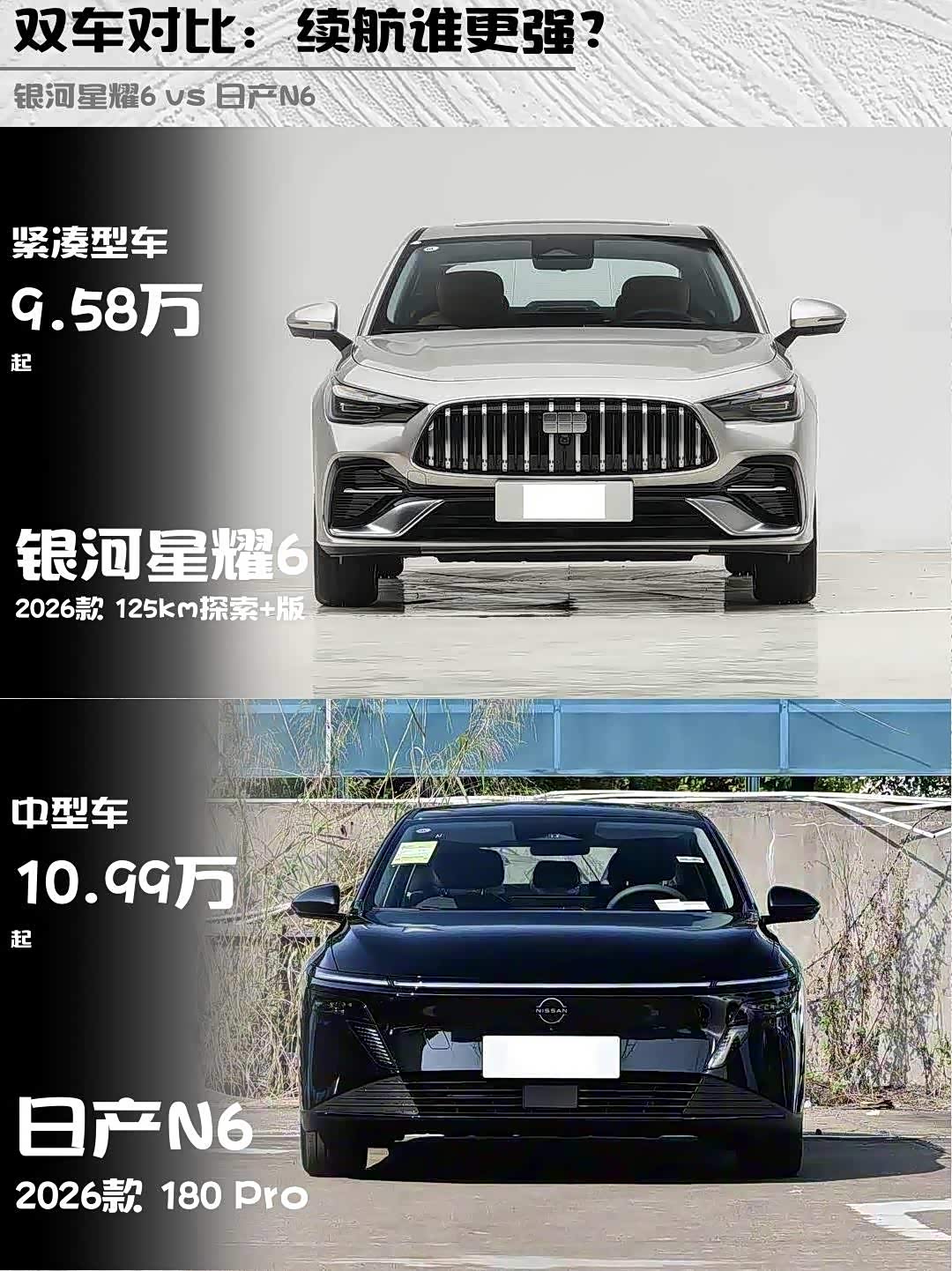 最近在选插混家轿的朋友看过来! 银河星耀6(参数|询价)和日产N6这两款10万级热门车,到底谁更香?深度对比2026款125km探索+版和180 Pro,帮你避坑选车🚗