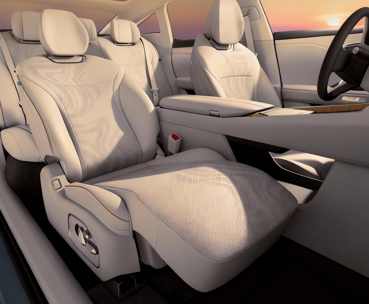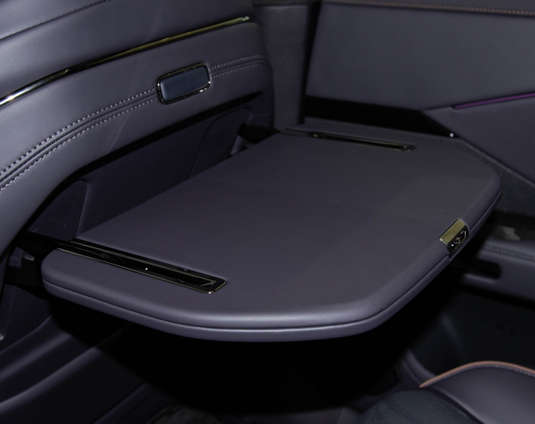内饰采用的是极简风设计,配备有内嵌式长条形仪表盘和悬浮式中控大屏幕,配备了新样式的多功能方向盘,中央功能区域配备了50W手机无线充电面板,有紫色、米色、棕色三种内饰配色可选,科技感营造得较为浓郁。
