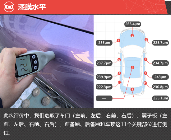 本项目主要通过对新车在基本参数、车身工艺、漆膜水平、车内空气质量、振动与噪声、驻车雷达以及灯光/视野等13个项目的实地测试,以客观数据的形式全方位直观展现新车在商品性方面的表现。
