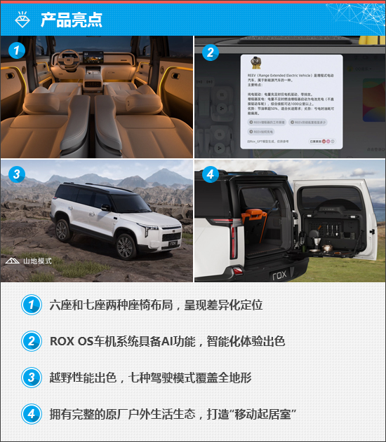 极石ADAMAS(参数|询价)并非一次简单的改款,而是对原有极石01的技术与产品框架进行系统性升级与重构。其定位为“全地形豪华SUV”,在竞争激烈的新能源中大型SUV市场中,具有独特的差异化优势。