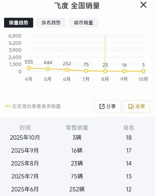 2025年10月,飞度仅卖出3台,堪称“聊胜于无”。