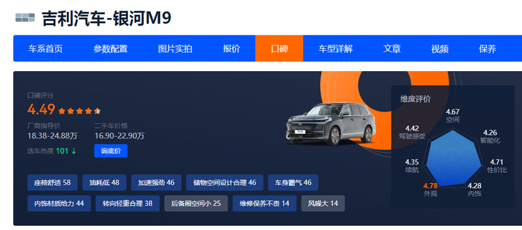 注:若补贴非直接抵减车价,则购车时前期支付压力可能并未降低。若购后返还,银河M9低配的落地价超过18万元。