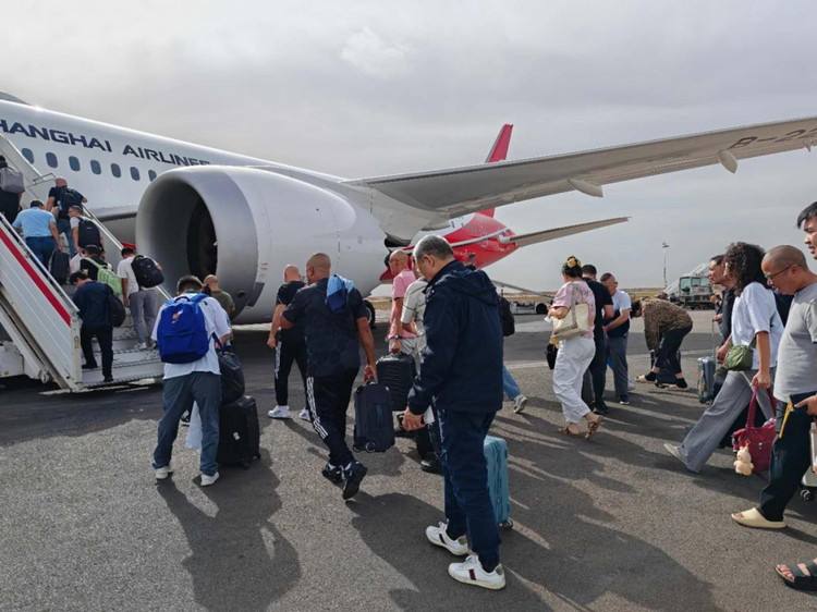 摩洛哥的航空业较为发达。轩辕考察团从巴塞罗那飞往丹吉尔耗时约2小时,丹吉尔机场虽不大,但每周直飞欧洲的航班约250班;拉巴特每周直飞欧洲的航班约80—100班,这两座机场的国际航班主要连接欧洲。