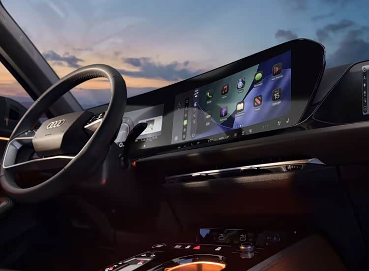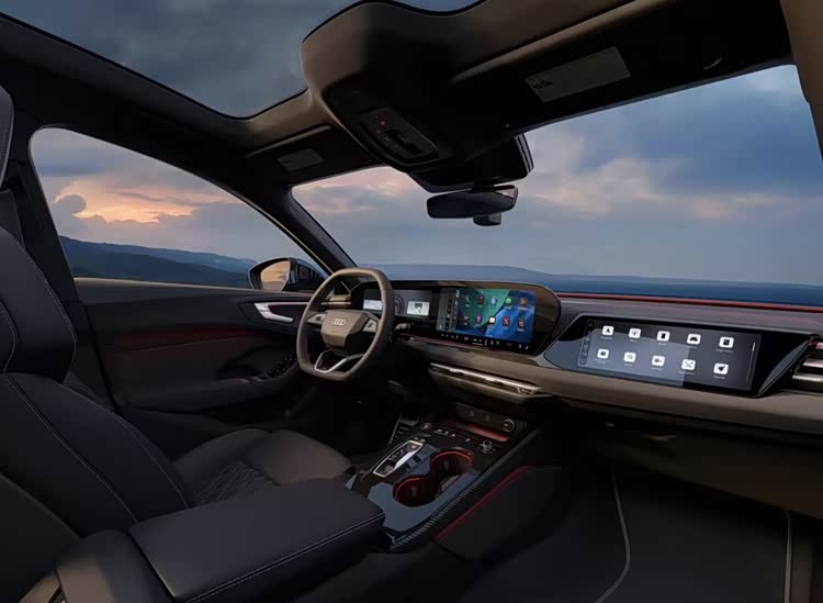 内饰以科技感与运动豪华为核心,全新MMI车机设计成为点睛之笔。座舱配备11.9英寸全液晶仪表盘与14.5英寸OLED曲面中控屏的双联屏组合,新系统摒弃传统层级列表,采用图形化模块界面,常用功能以彩色图标形式陈列于主界面,大幅降低操作难度。方向盘回归经典滚轮设计,搭配拨杆式电子档把,碳纤维饰板点缀中控台,配合Valcona真皮一体式运动座椅与红色缝线,将性能氛围拉满。