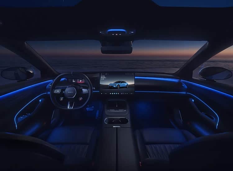 外观方面,新车在保留经典溜背造型基础上优化细节质感,辨识度显著提升。新增“卡布里蓝”专属车漆,以青蓝基底搭配纳米级钴蓝颜料,在不同光照下呈现地中海浅海般的渐变效果,替代此前市场接受度较低的熔岩橙配色。车身尺寸方面,其长宽高维持4997/1963/1455mm,轴距3000mm,风阻系数保持0.195的优异水平,兼顾气场与能效。前脸水滴大灯内部结构不变,前包围进气开口微调,格栅中部集成毫米波雷达,兼顾美观与实用性;外后视镜壳采用全新黑色涂装,搭配20英寸锋刃式铝合金轮毂,运动氛围进一步强化。