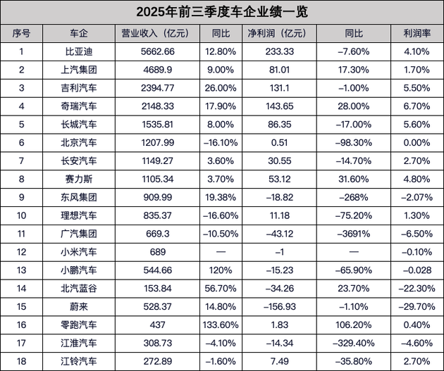 另外,2025年前三季度,奇瑞集团营收2148.33亿元,同比增长17.9%;净利润143.65亿元,同比大增28%,利润率高达6.7%,远超行业平均,是隐藏的利润王。